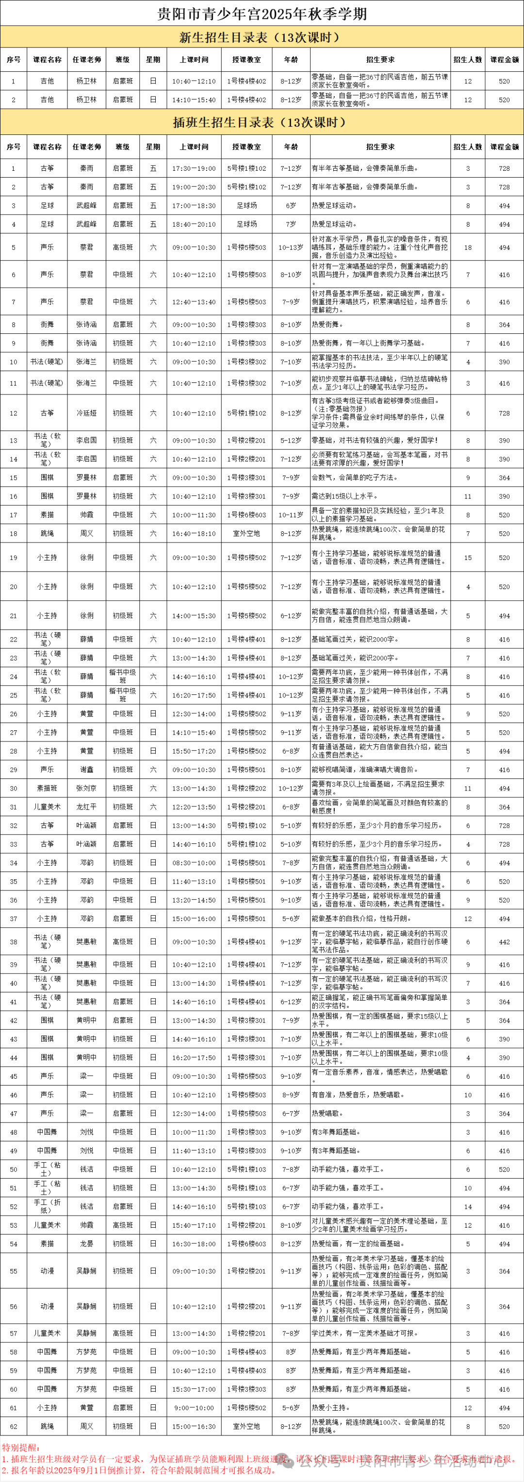 贵阳市青少年宫即将开展2025年秋季学期新生及插班生报名,为确保招生工作公开公平公正,本次招生采取摇号报名的形式,现将本次报名相关事宜通知如下:
