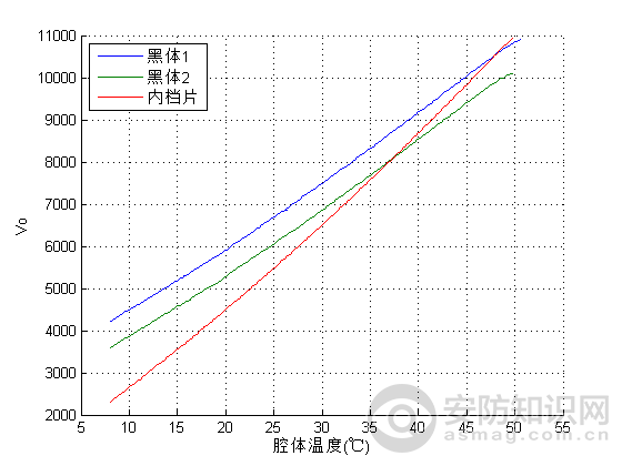 一点法在数学模型中把X轴方向的值固定,然后分别测量两个不同温度的均匀辐照面,通过减档片操作后,其校正系数仅剩直线的截距部分,亦即仅考虑了目标值的相对大小关系,而自身FPA温度、前腔温度、读出电路噪声等的影响都只能用分段校正的办法来解决。众多文献都指出,当分段区间超出5K时,其校正效果将变得不可接受。