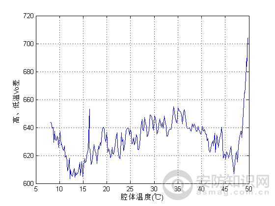 图2说明了在宏观上看起来平行的两条曲线,其实际数据却并不平行。这种差异一方面是测量时恒温箱温度不稳定的原因,另一方面也有感应单元在不同温度下的响应特性差异的原因。这种现象造成了一点校正法难以在整个工作温度范围内都得到理想校正效果。